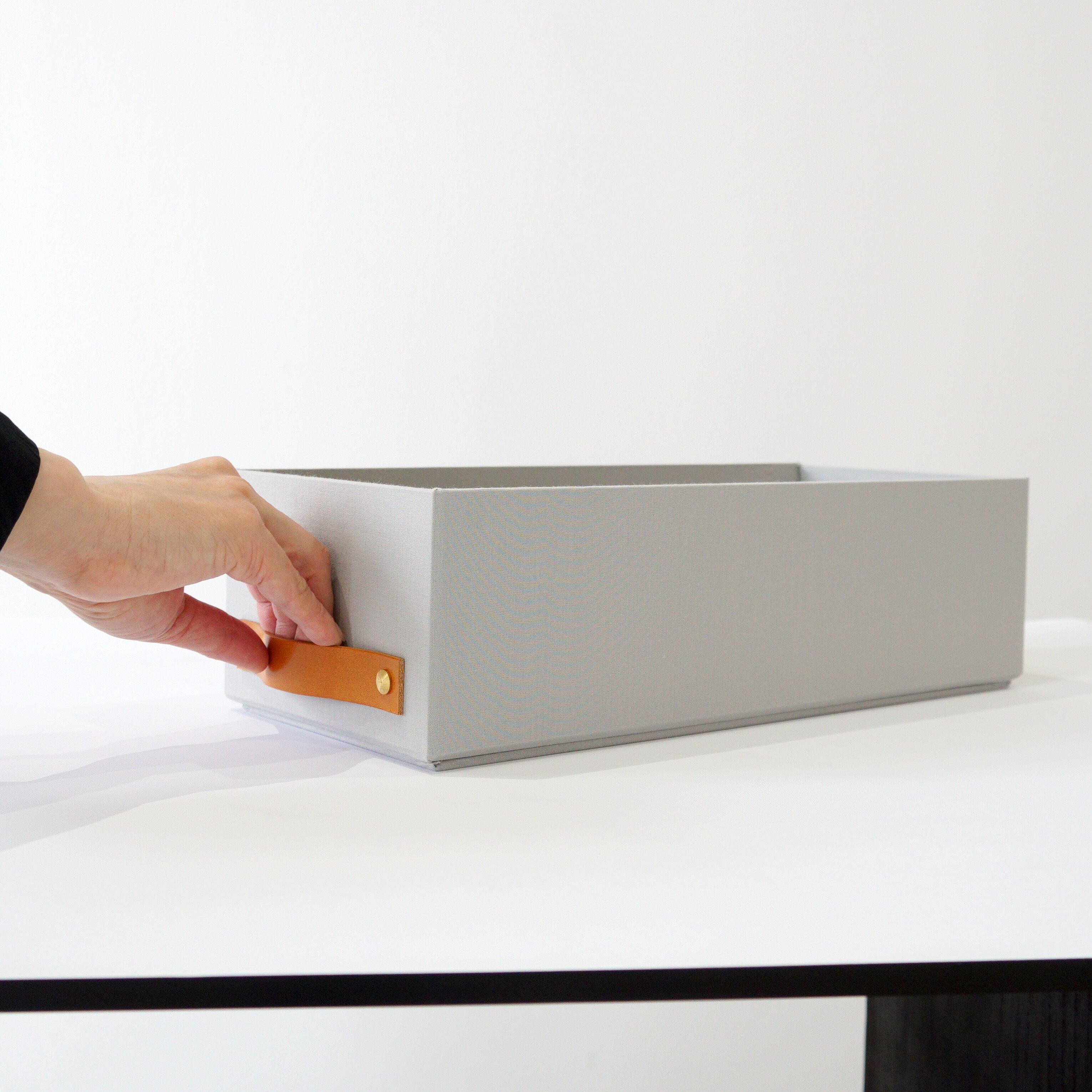 ボックスファイルは貼箱の技術を活用し手貼りで制作されています。
