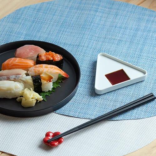 おしょうゆを注ぐとおにぎりのかたちがうかびあがる小皿