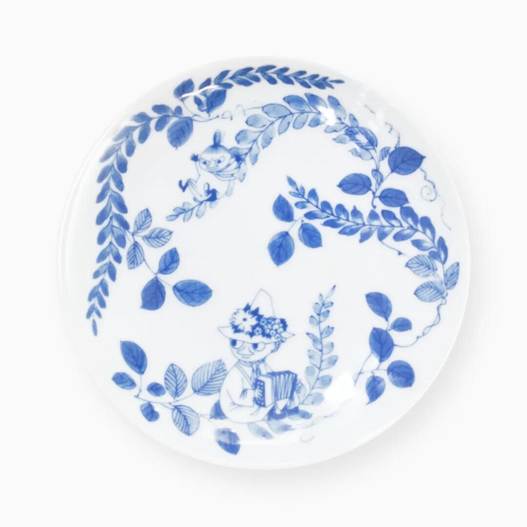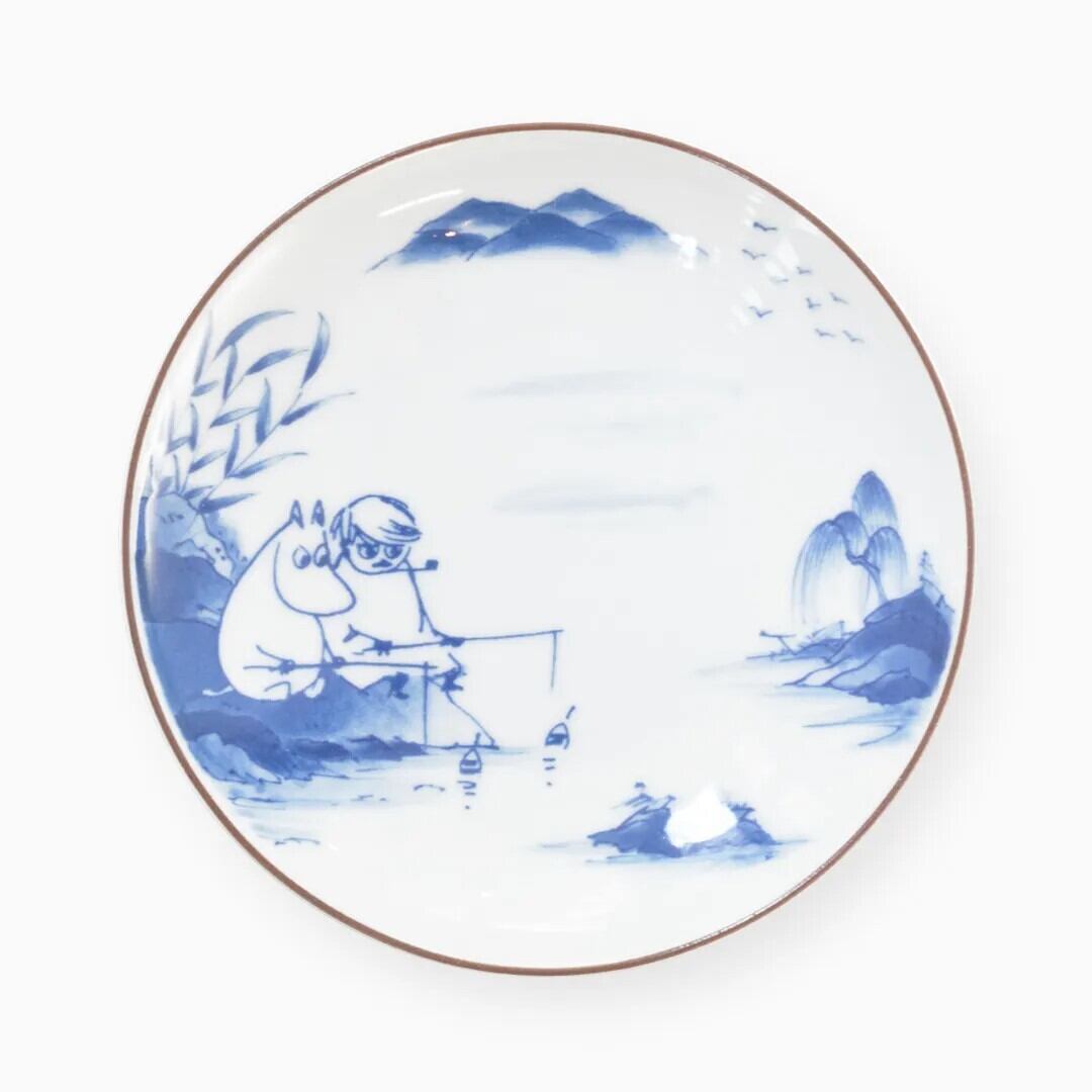ムーミンが日本画の中に迷い込んできましたよ。有田焼の伝統技法の一つ「呉須(ごす)」で染め付けされたムーミンの絵柄のお皿です。取り皿にちょうどいい豆皿サイズ。アマブロとムーミンのコラボレーションアイテムです。