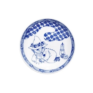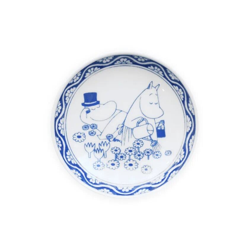 アマブロとムーミンのコラボレーション。ムーミンのキャラクターが描かれた豆皿です。キャラクターの周囲の模様はそれぞれにちなんだ柄があしらわれています。