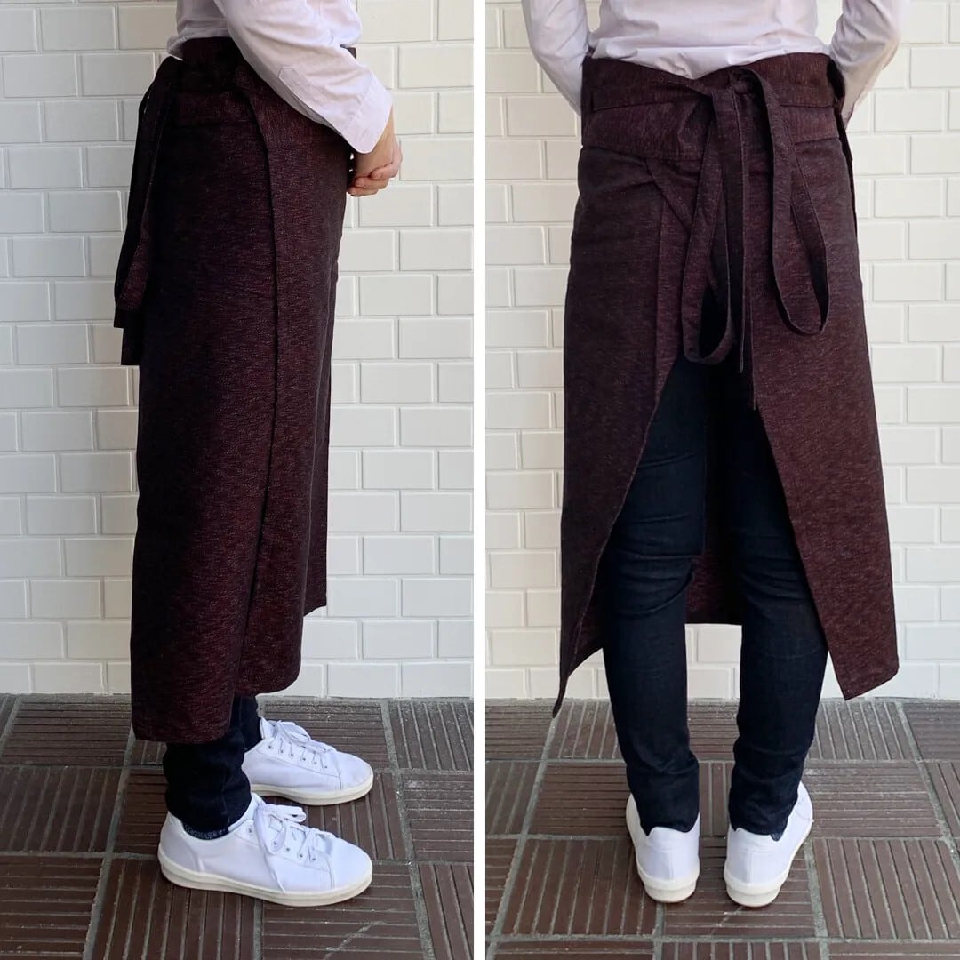 がに股や正座からの立ち上がりなど、洋式のエプロンでは不便なシーンでも使える日本伝統の形です