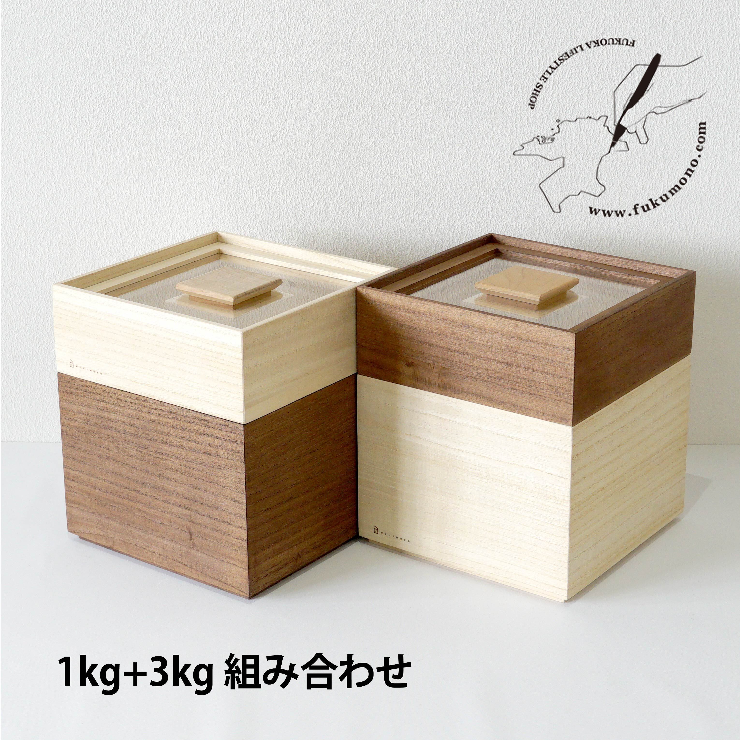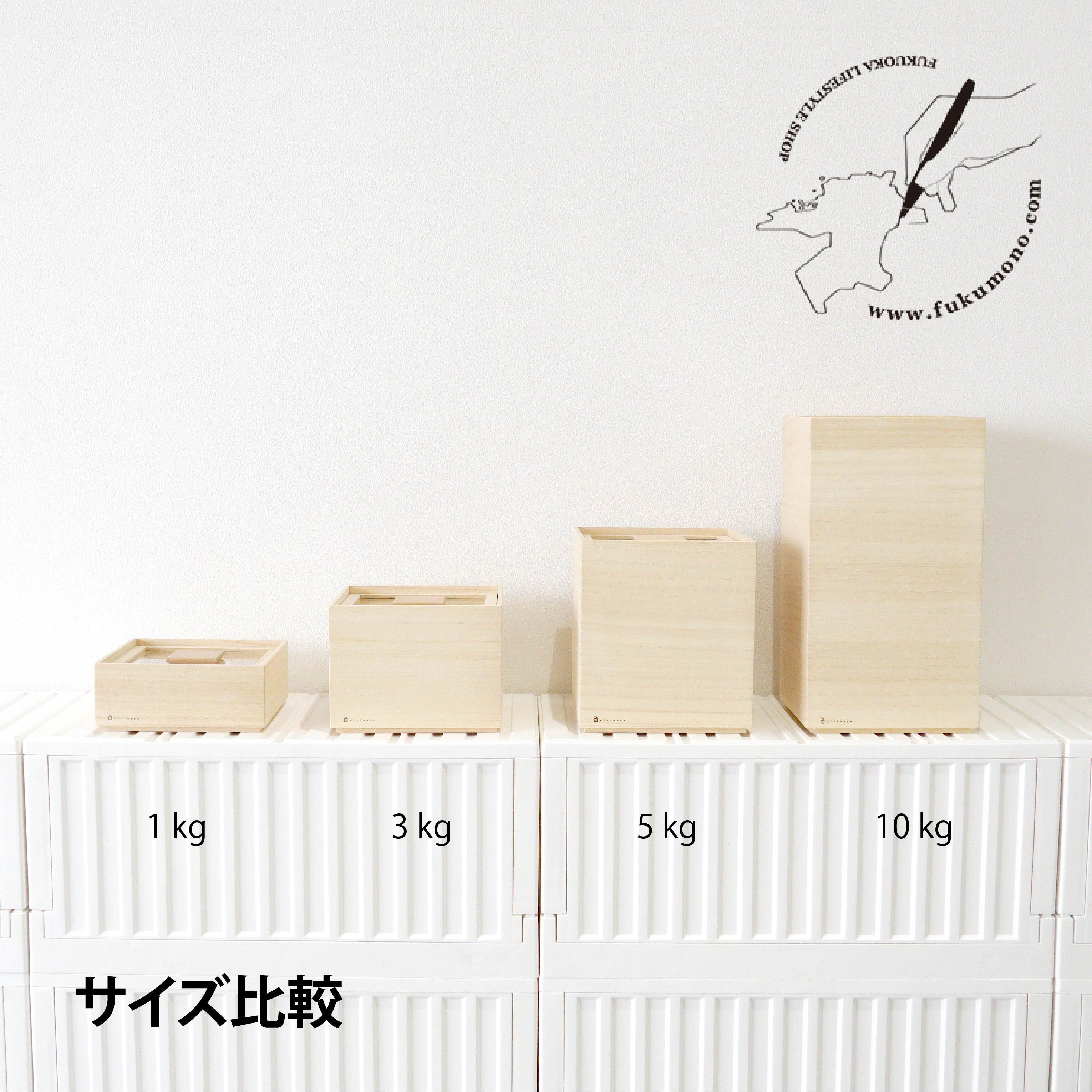 1kg+3kgをスタッキングすると米びつ5kgと同じ高さになります。