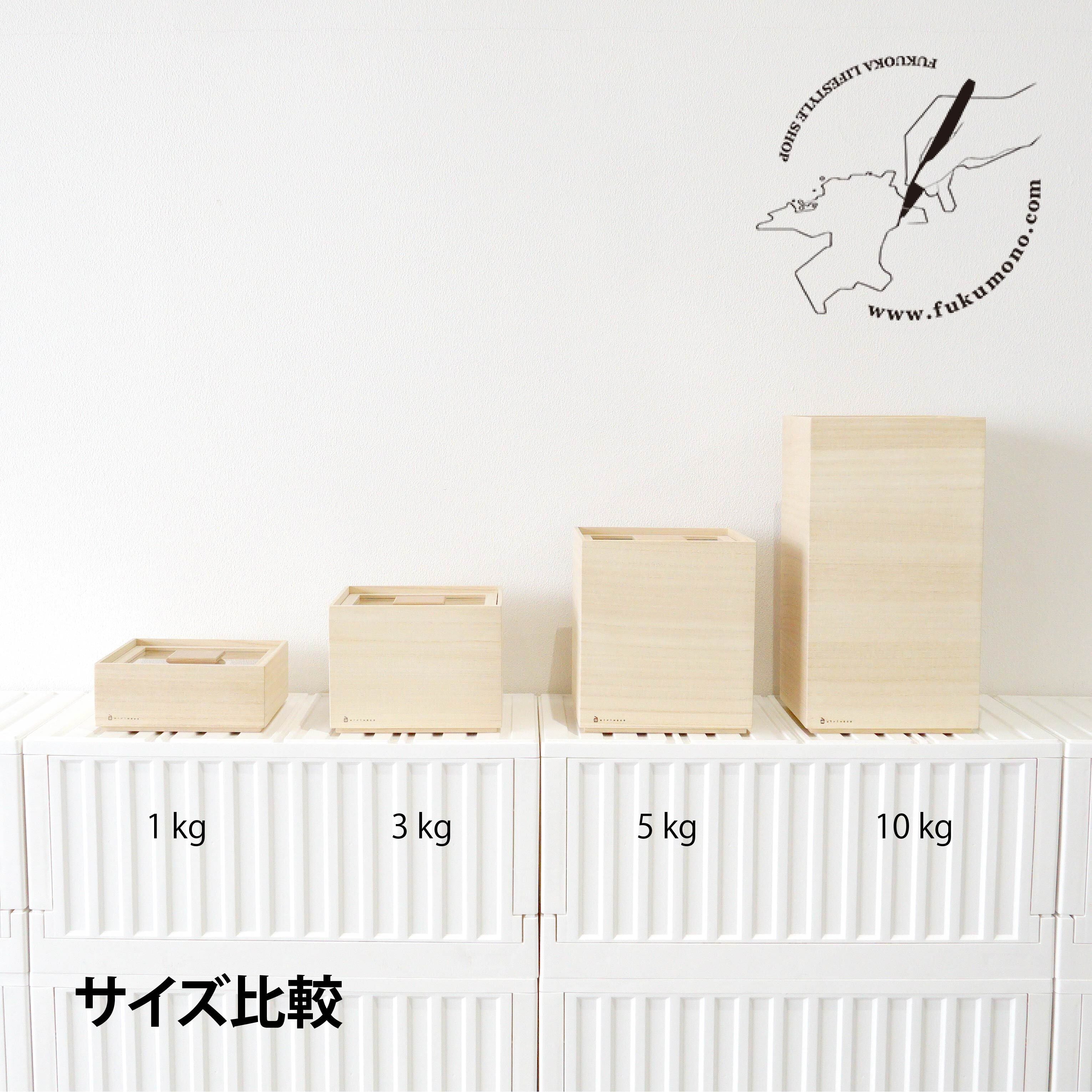 木のやさしい雰囲気がキッチンインテリアとして飾っていたくなる米びつ
