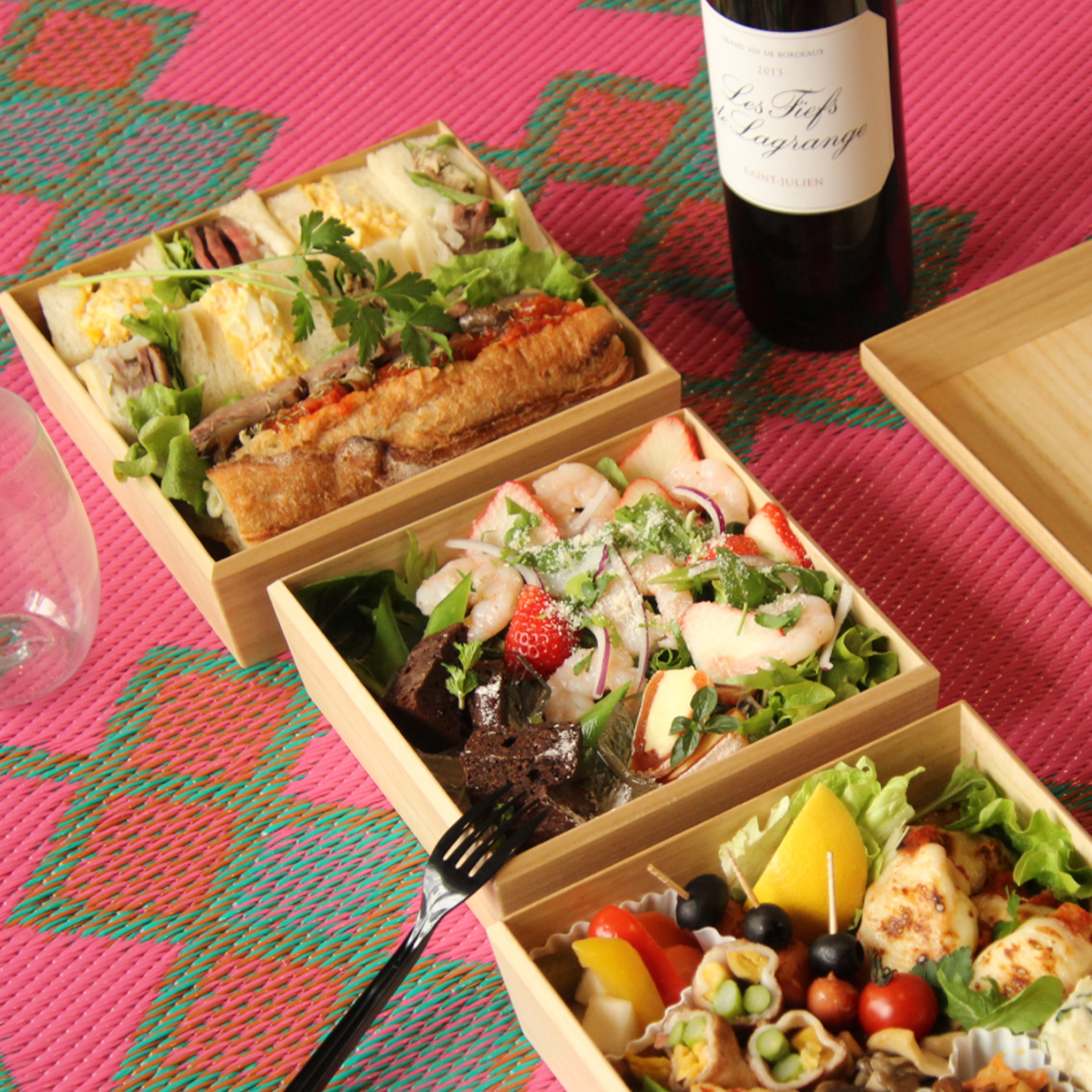 入れ子の外側になる壱の重には高さがあるため高めの盛りつけをした食材がつぶれにくくなっています