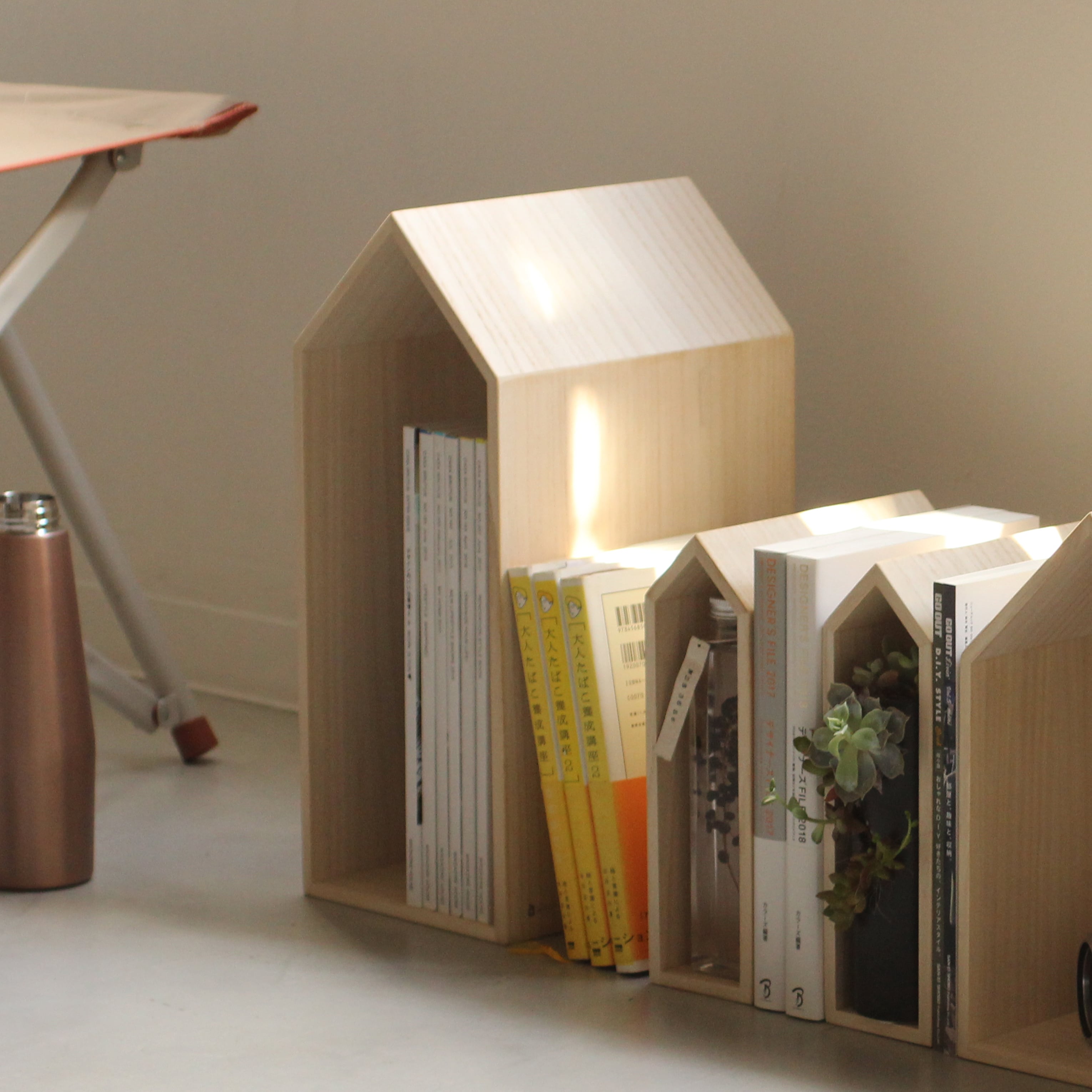 本の収納だけではなく家の形を利用してディスプレイをしたり、屋根の部分には読みかけの本を開いたまま置いて本を屋根にできます