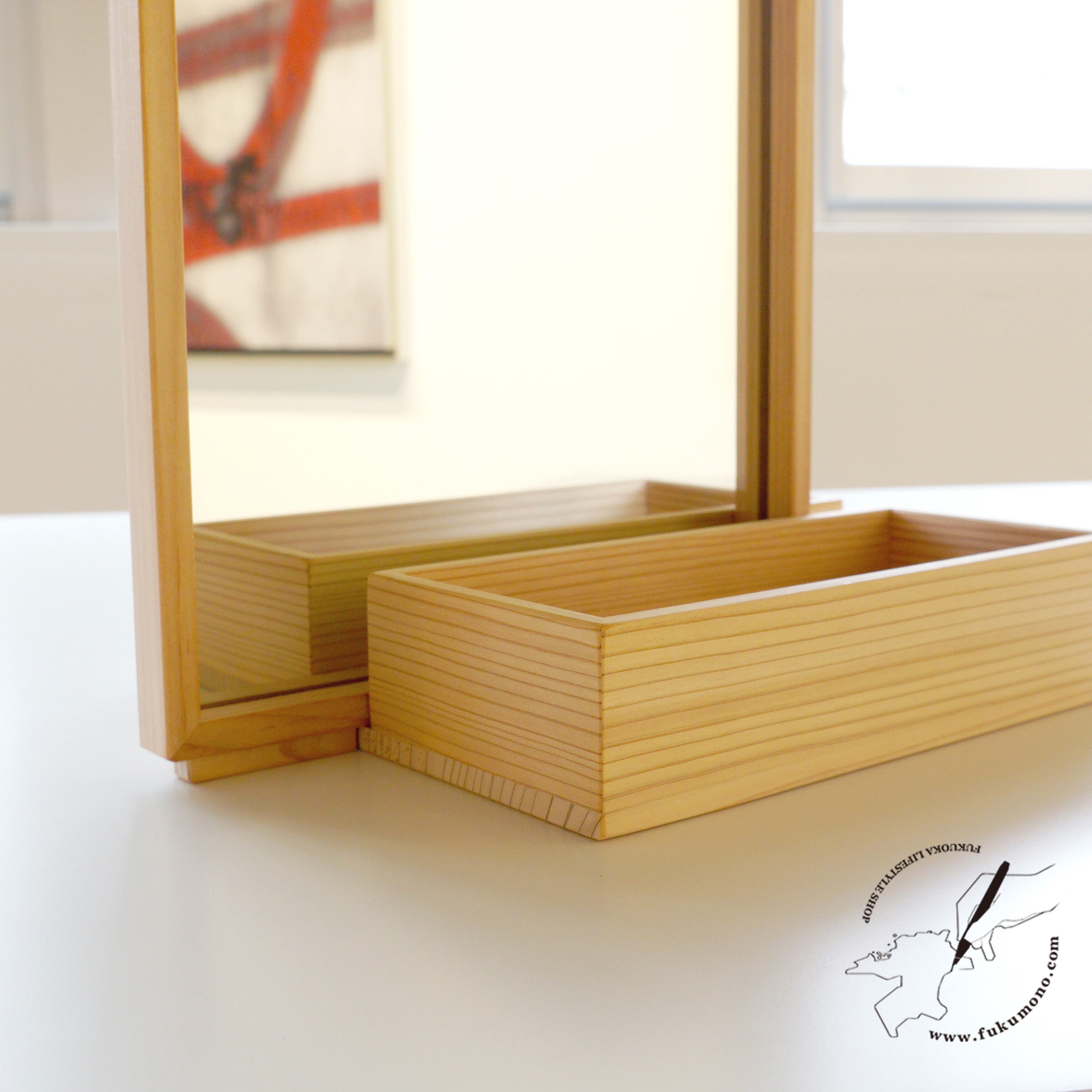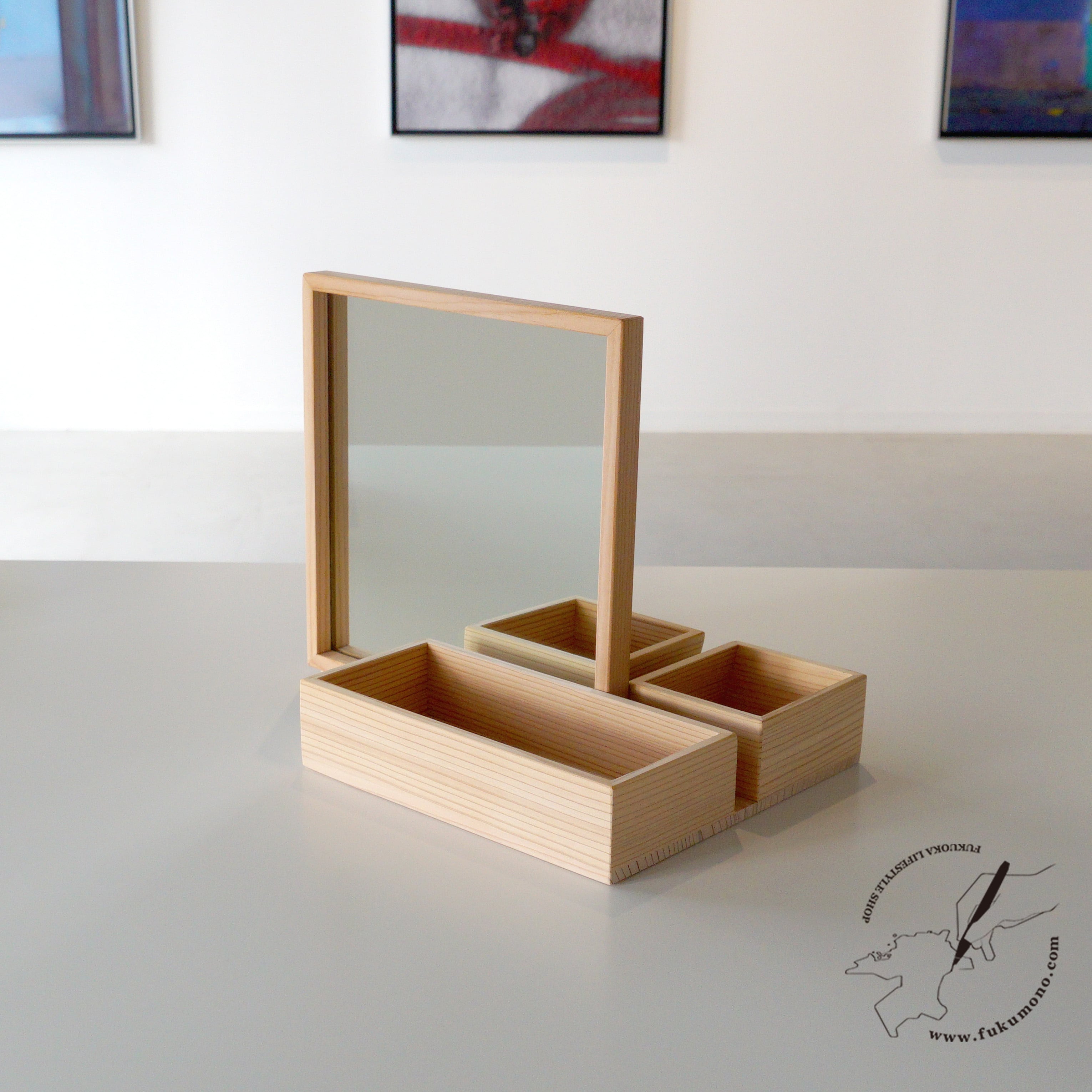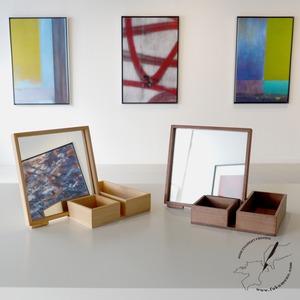 鏡のフタを小箱と小箱の隙間に差し込んで卓上鏡として立てられます