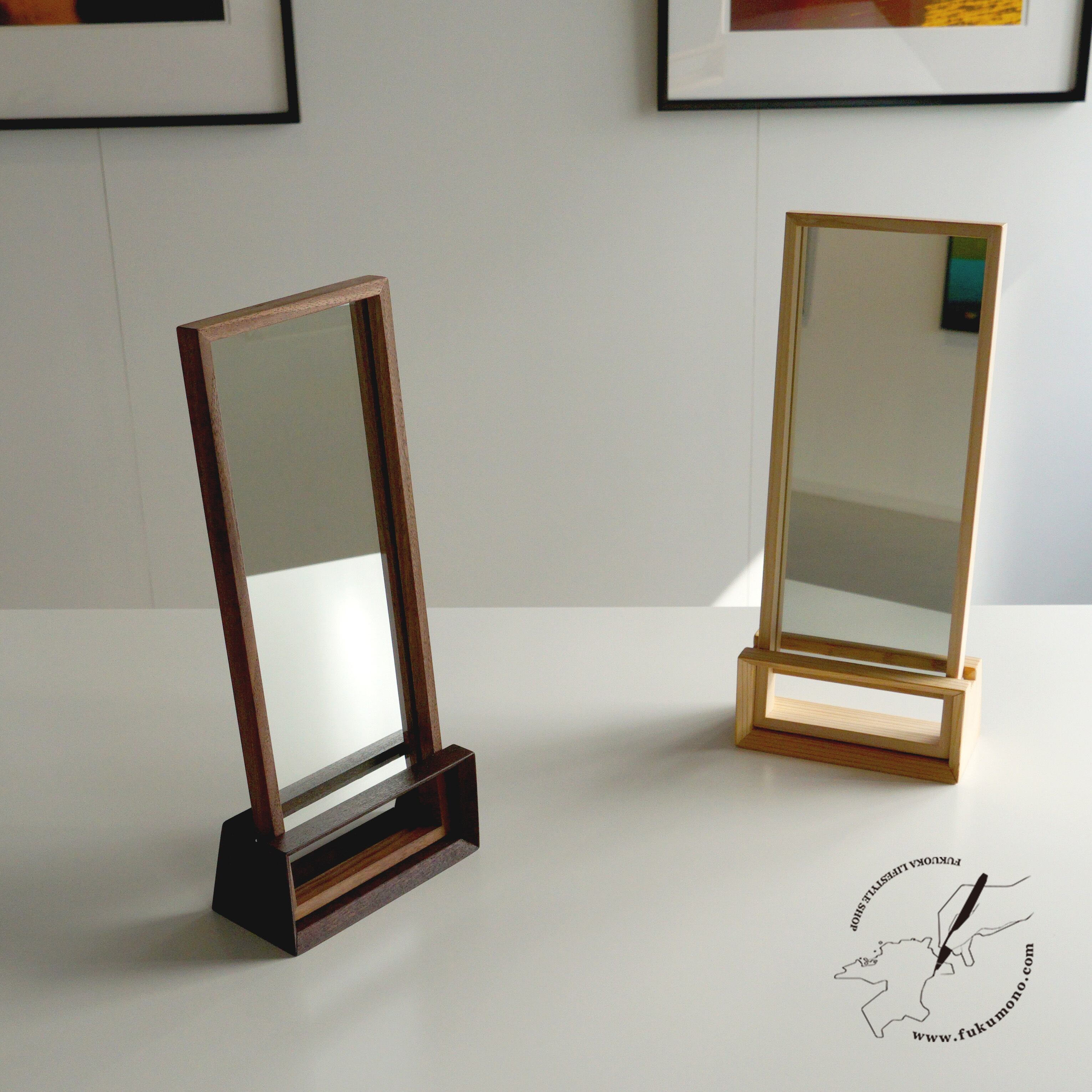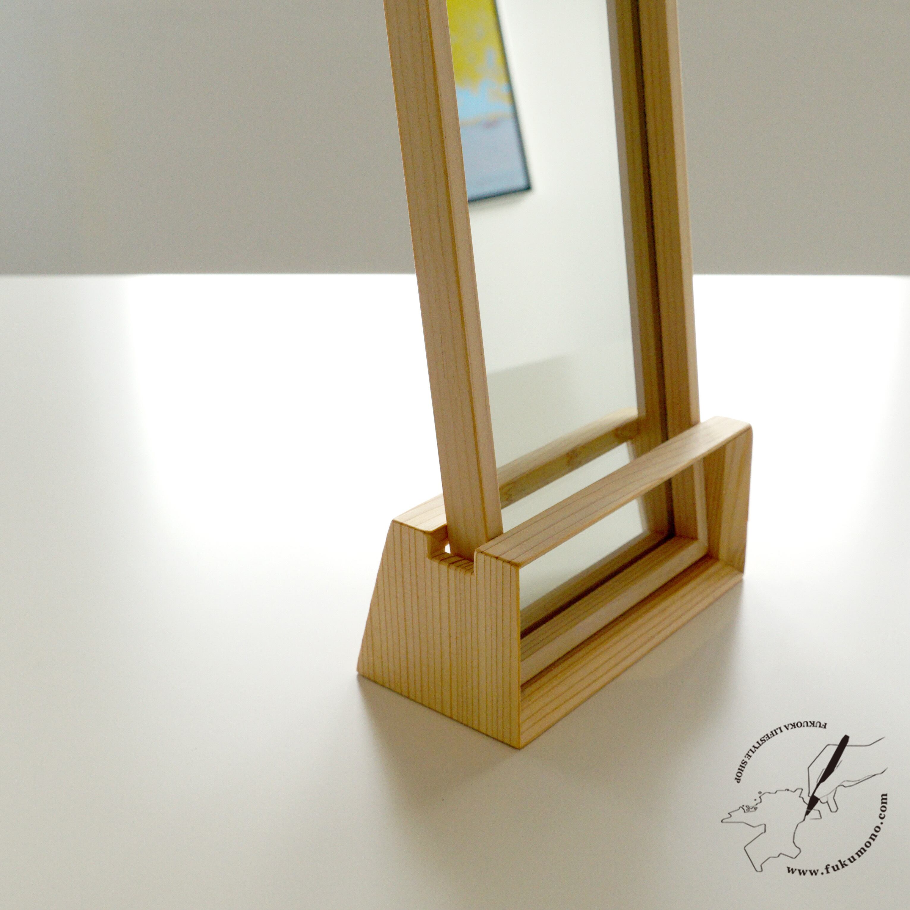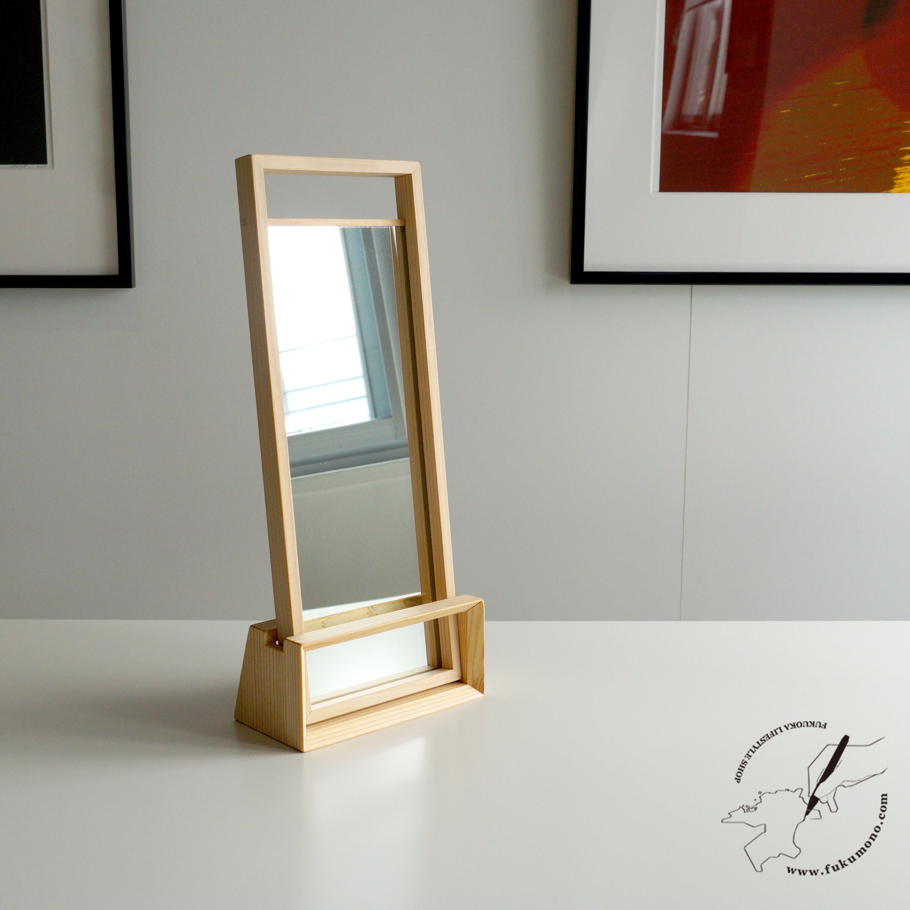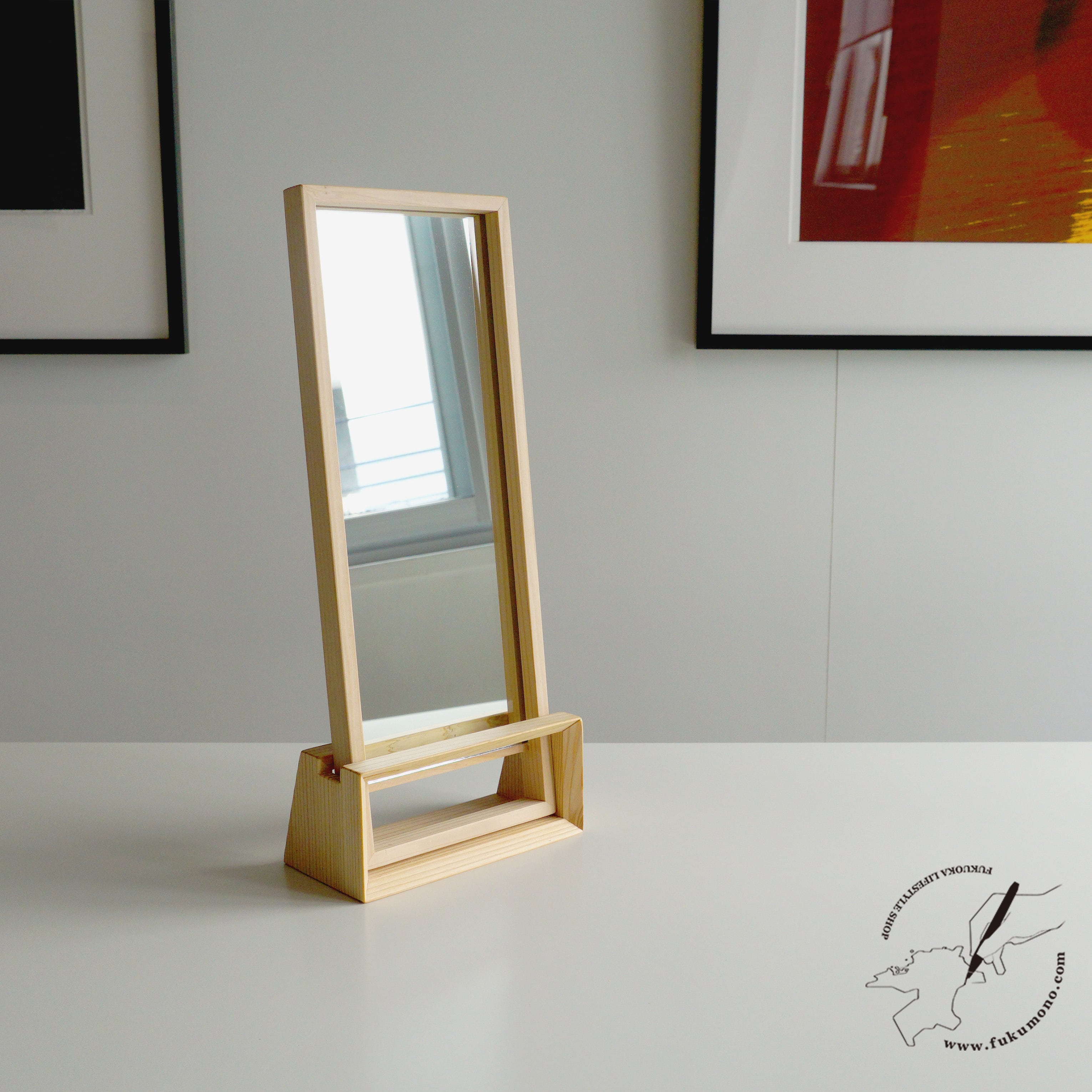 スタンドに立てて卓上鏡として使うとき、鏡の上部取手を下に反転させセッティングすることで鏡を最大限に活用できます