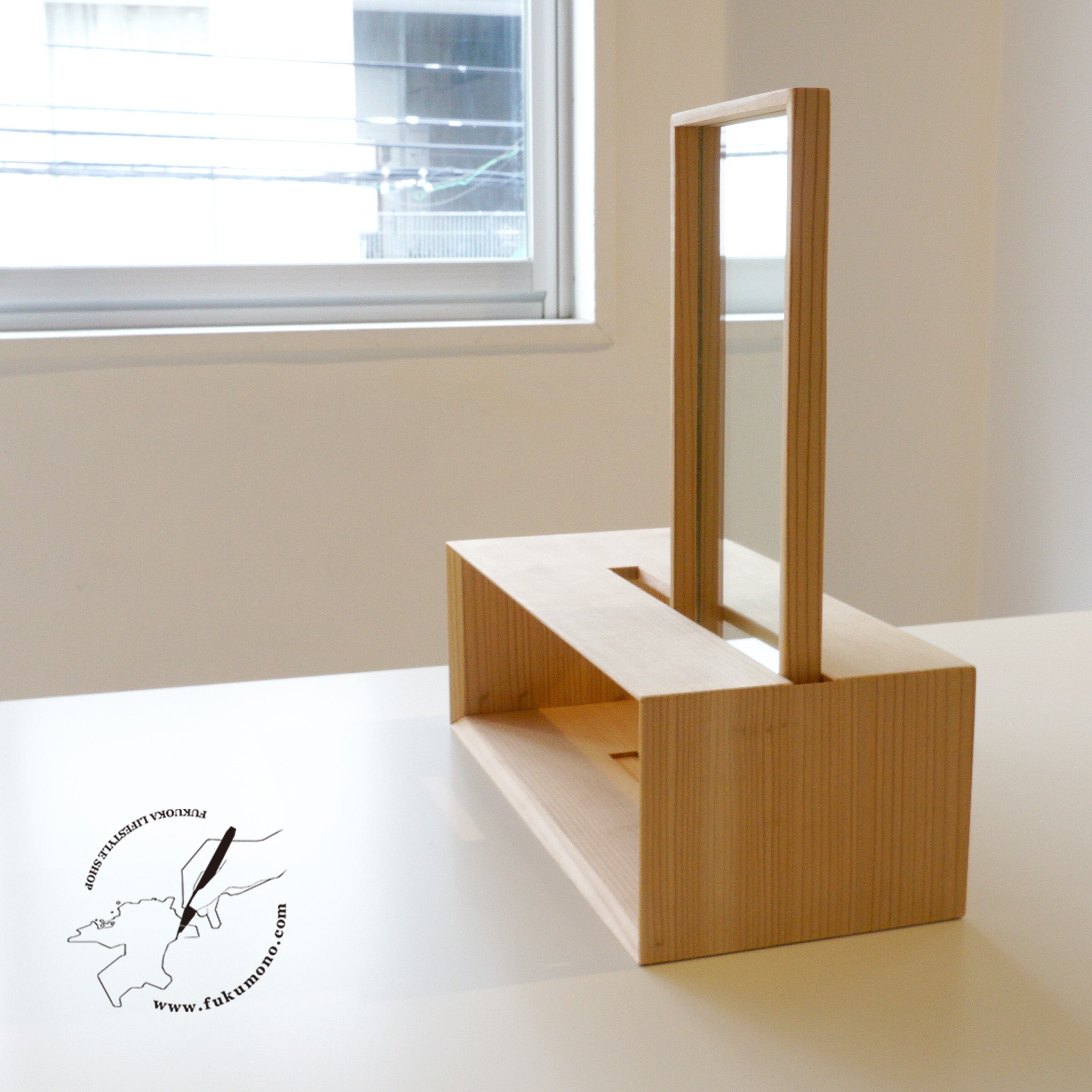 スタンドの下にコットン・ティッシュ・化粧品などの鏡を見るときに使うものを収納してスッキリさせることもできます