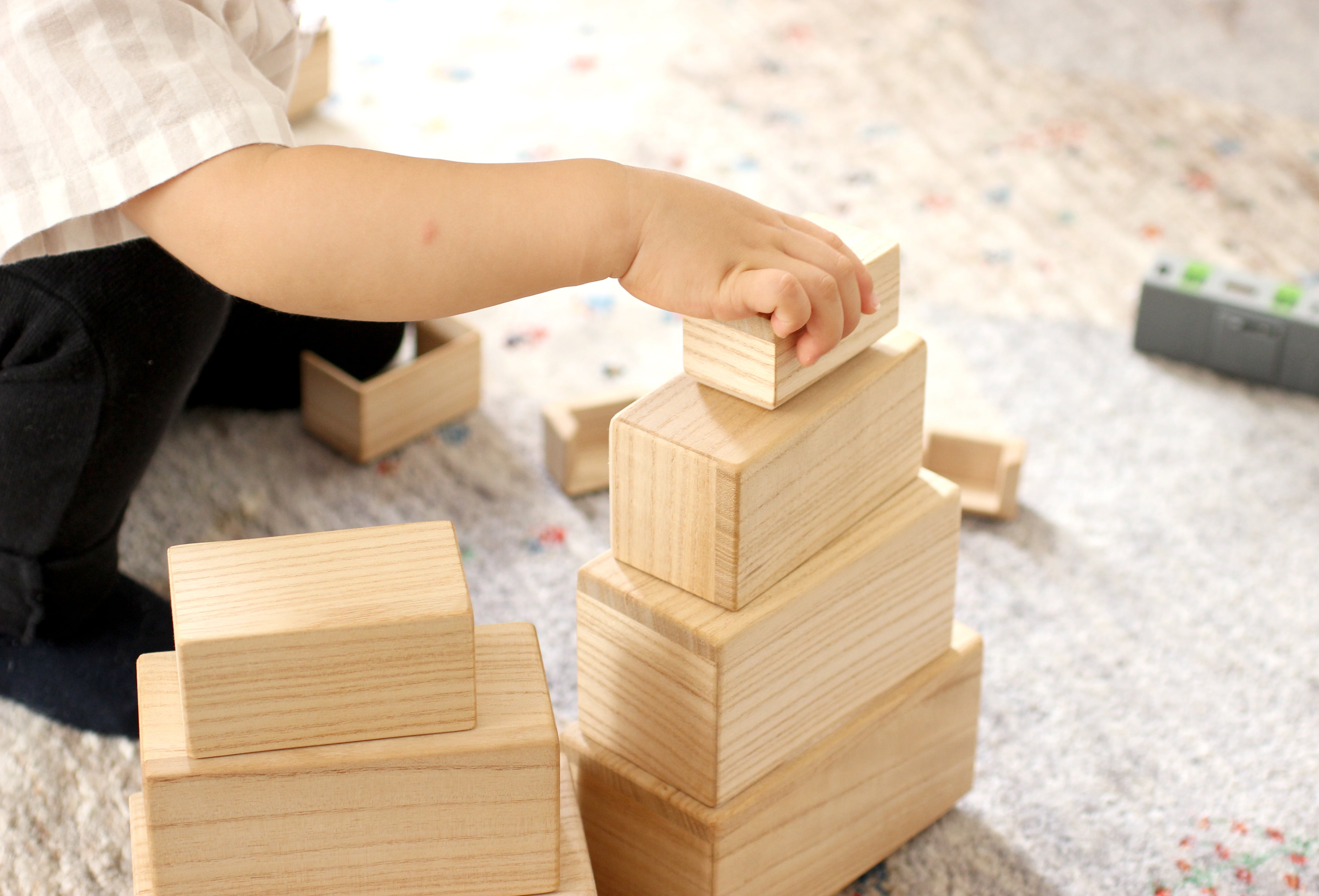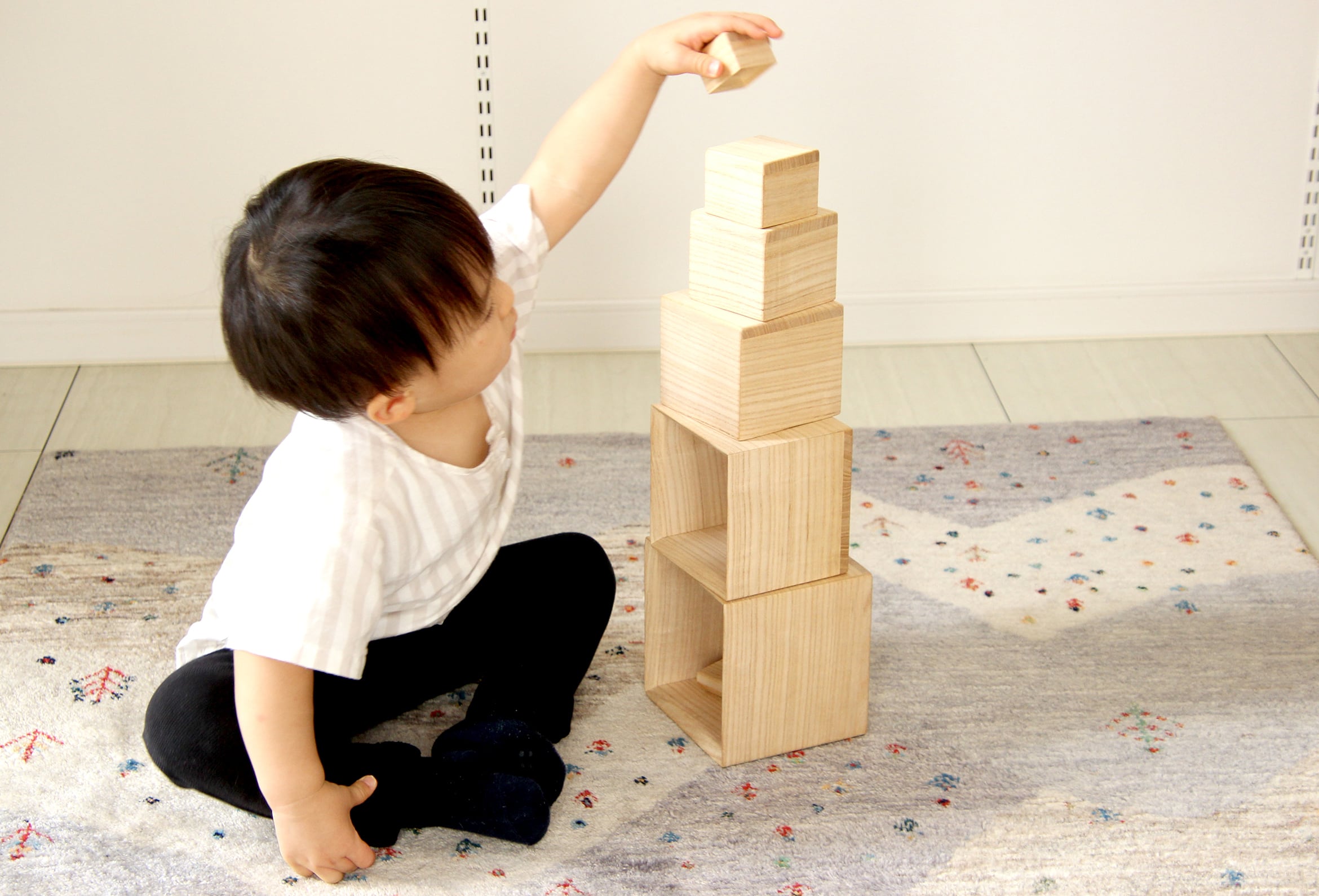 積み木として積んだり、箱として中におもちゃや宝物をいれて使ったりと想像を膨らませて楽しめます