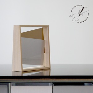 フォトフレームが倒れにくいよう木枠は台形に設計されています