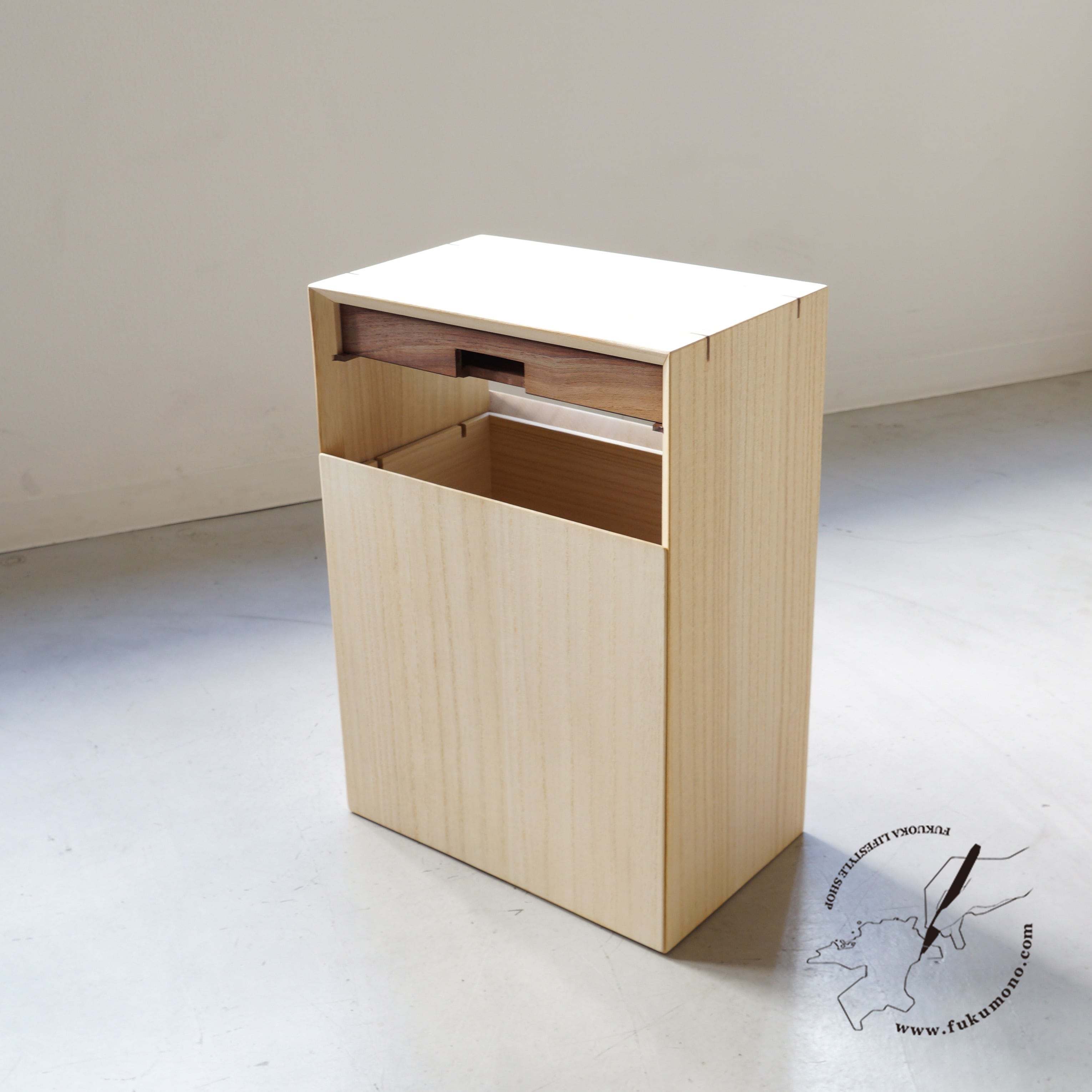 天板の上面をサイドテーブルとしても使え、手前と奥どちらからもゴミを入れられます